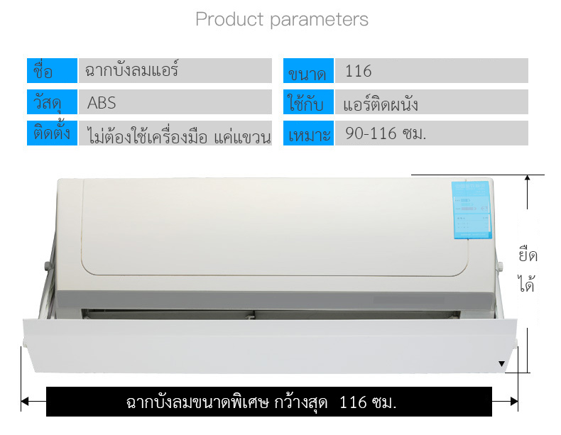 เหมาะสำหรับเครื่องปรับอากาศชนิด ติดผนัง ขนาดเครื่องยาว 90-116 ซม.